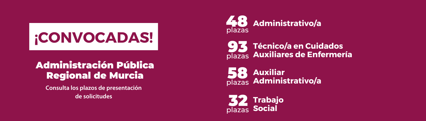 Todas las novedades sobre las oposiciones a la Región de Murcia y corporaciones locales: oferta de plazas, convocatorias, requisitos, listas de admitidos, fechas de examen, procesos, etc.